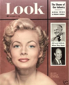 Anita Ekburg on the cover of look magazine wearing a rare short hair style for the 1950’s sex symbol